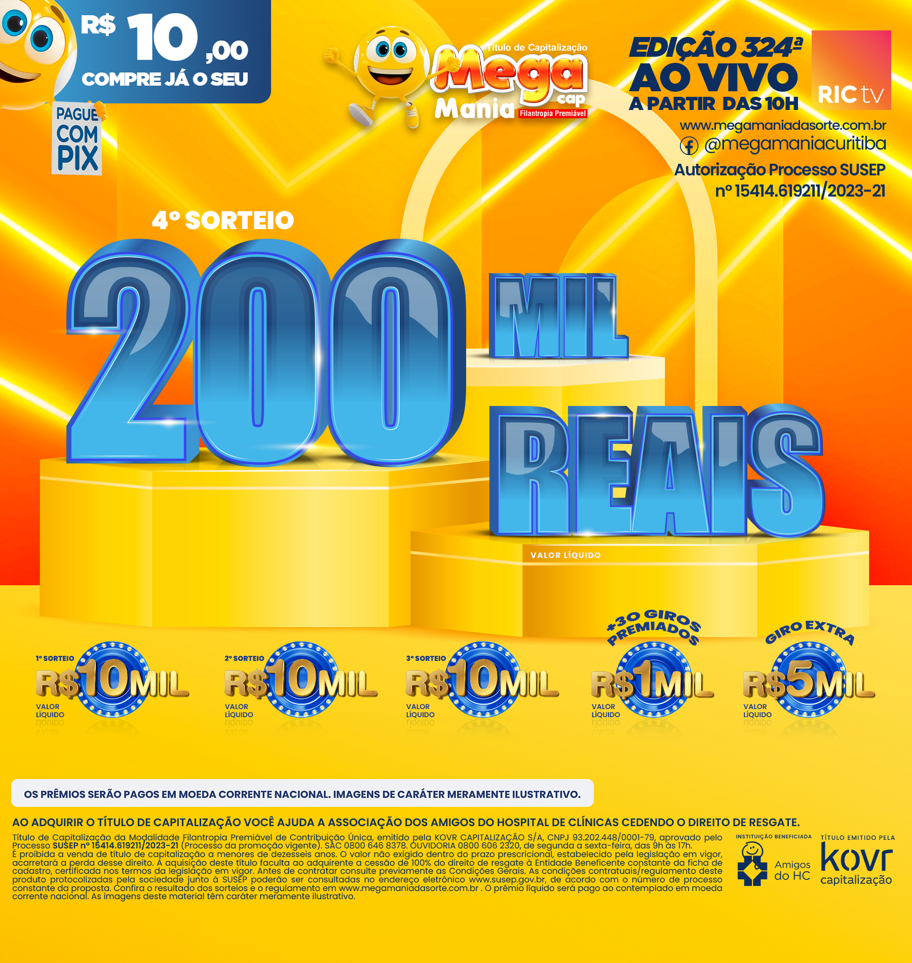 O comprovante de pagamento do Pix que for liquidado até às 23h50 do dia anterior ao sorteio será considerado a confirmação da aquisição do título e concederá o direito à participação dos sorteios, desde que os valores não sejam estornados por qualquer inconsistência em seu envio.
